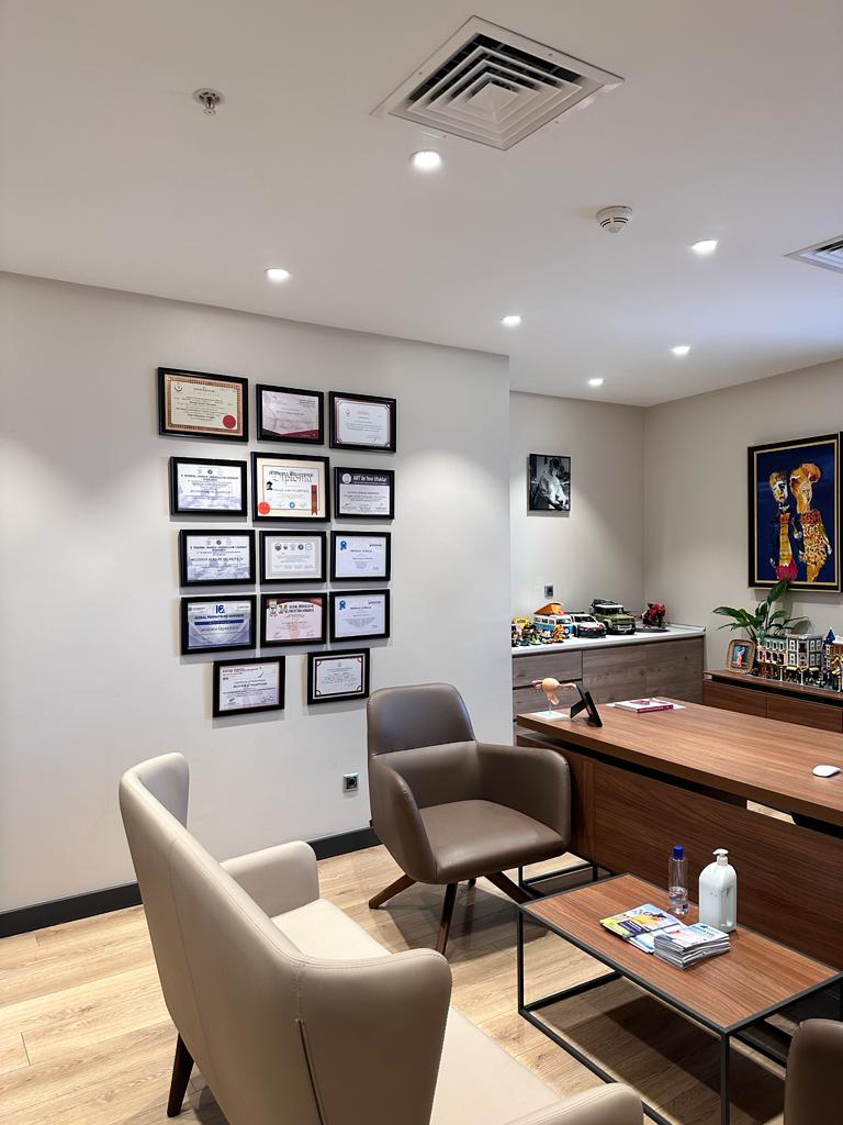 Merkezi bir lokasyonda bulunan muayenehanemiz, evinizin rahatlığını aratmayan tasarımıyla hasta kabulüne devam etmektedir. Sıcak bir kahve eşliğinde sizleri ağırlamaktan mutluluk duyan ekibimiz, her ziyaretinizde samimi bir aile ortamı sunar. Muayenehanemizde, modern tıbbın imkanlarından faydalanarak, herkesi sağlık ve mutlulukla karşılamaya hazırız.
